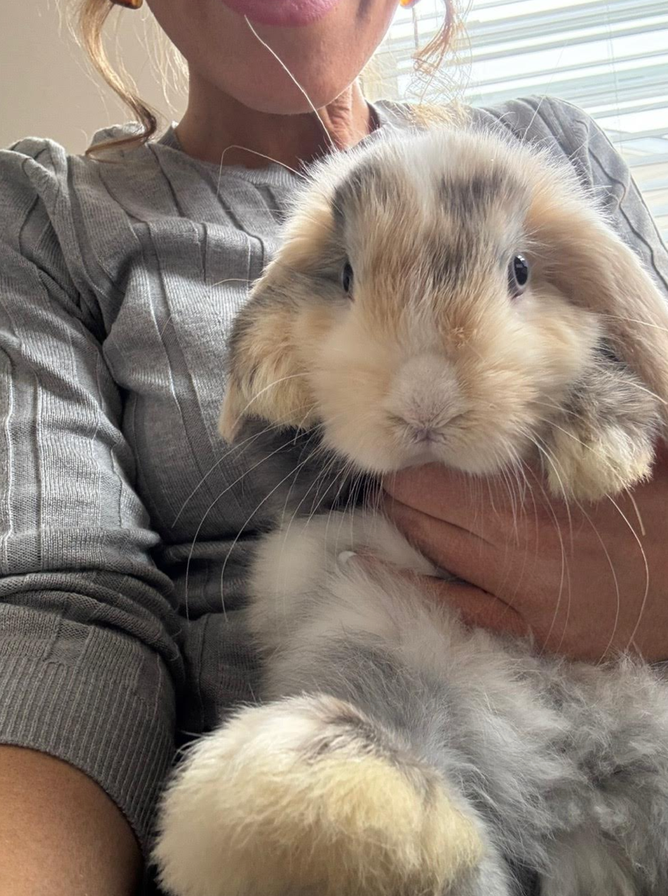 Theodore is our proud, light-grey papa bunny, and he’s a bit of a local star! He took home 2nd place in his category at a 4H fair, showing off his handsome coat and friendly charm. Theodore is playful and curious, always hopping around to explore new things. His striking grey fur and gentle personality have made him a favorite, and he brings both good looks and charm to all his adorable babies.